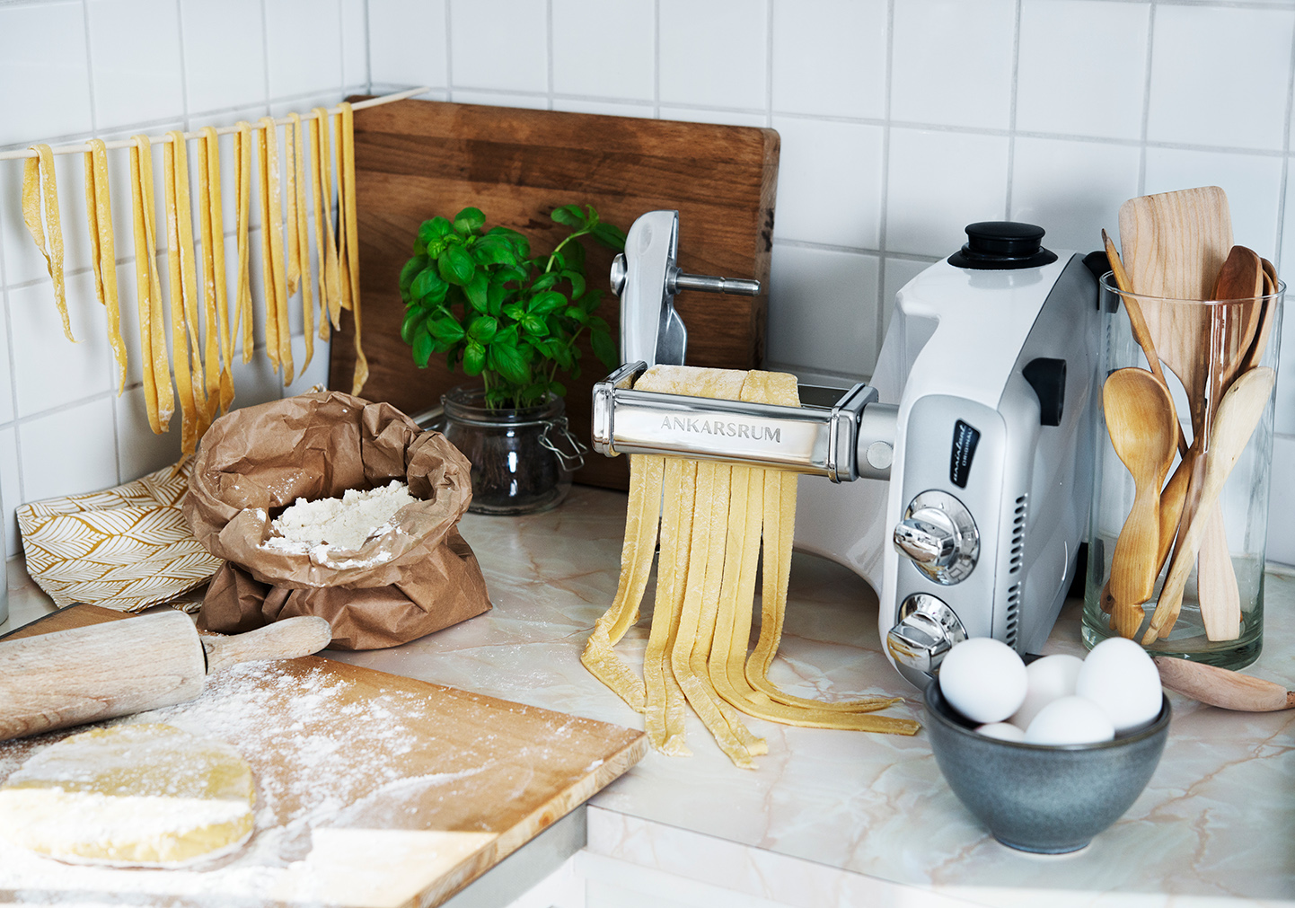 Uz dodatne nastavke koji se kupuju zasebno, također možete miješati, mutiti, mljeti meso, raditi tjesteninu, cijediti agrume, izrađivati savršene kobasice, hamburgere, kruh, tjestenine, umake, smoothie, pa čak i sladoled. Samo vaša mašta postavlja granice onoga što vi i vaš Ankarsrum Assistent Original možete pripremiti.